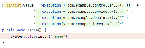 - 어드바이스를 적용할 타겟의 메서드를 선별하는 정규표현식이다. (하단의 그림 참고)