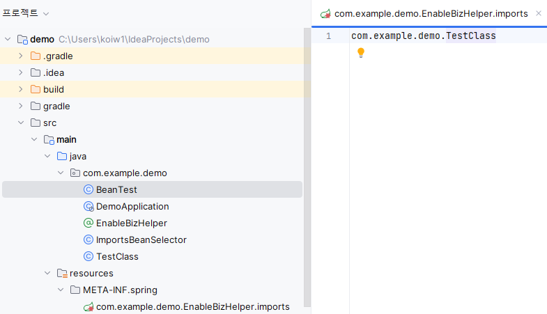 - ImportCandidates.load 메소드를 들어가보면 아래와 같은 소스가 있는데, 하단의 프로젝트 경로와 같이 구성하면 해당 패키지 경로에 있는 Class 파일을 읽어와 스프링 Bean으로 등록할 수 있다.